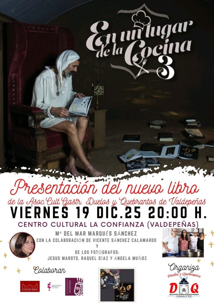El próximo 19 de diciembre a las 20:00 horas, el salón del Centro Cultural La Confianza acogerá la presentación de “En un lugar de la cocina 3”, el esperado tercer libro de la Asociación Cultural Gastronómica Duelos y Quebrantos de Valdepeñas, nuevo volumen con nuevas recetas, nuevos refranes, muchas más curiosidades gastronómicas y por supuesto, con nuevas fotografías que volverán a sorprender a los lectores y lectoras.