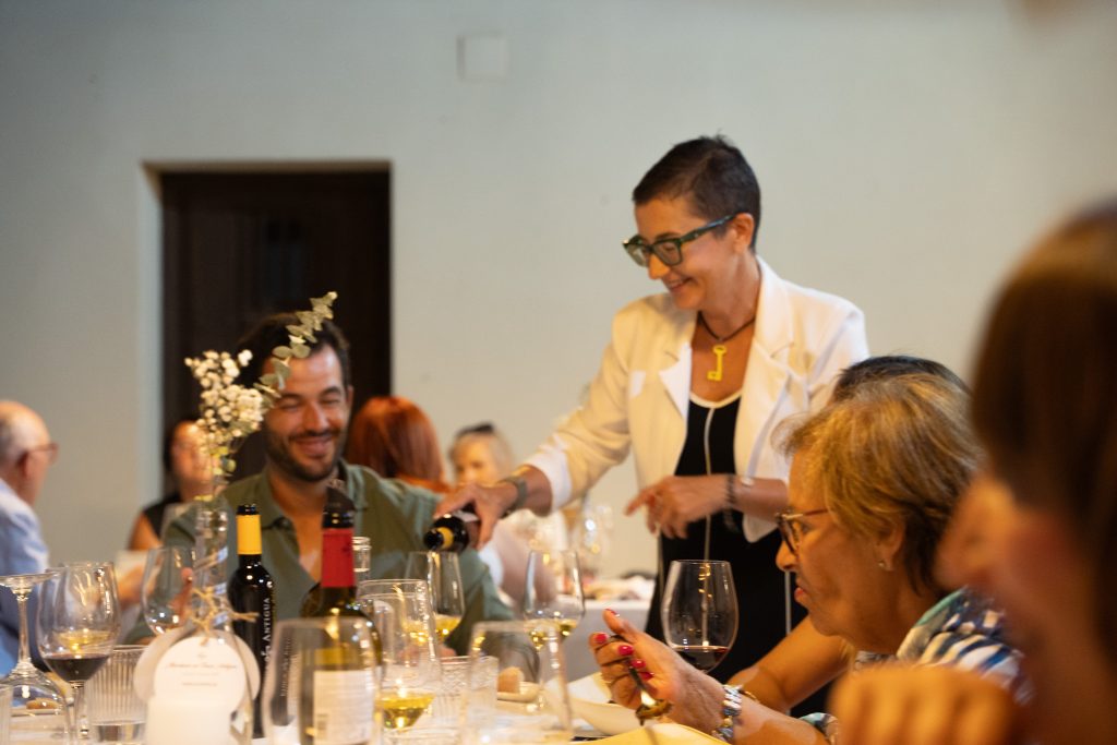 R. “En vendimia, por ejemplo, celebramos la cata del primer mosto y La Rebusca, donde vendimiamos aquellos racimos que han quedado atrás en las cepas. En verano ofrecemos “El Atardecer en Finca Antigua” una experiencia sensorial donde se disfruta de una cena maridaje y música en directo en La Casona. También contamos con experiencias como la cata de seis crianzas monovarietales, para descubrir la personalidad de cada variedad de uva, o la cata de Aromas del Vino, en la que utilizamos hierbas y plantas de la finca —romero, tomillo— para identificar notas balsámicas en los vinos. Pensamos también en las familias: mientras los padres disfrutan de la cata, los niños participan en gymkanas, concursos o talleres de dibujo. De hecho, conservamos verdaderas obras de arte realizadas por pequeños visitantes. Además, ofrecemos rutas en 4×4 y recorridos de senderismo por los viñedos y el monte, en los que compartimos información sobre la flora y la fauna del entorno”.