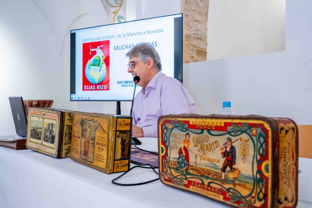 La jornada también ha contado con la charla “El mercado del azafrán de Albacete y las casas comerciales de Novelda” en la que David Beltrá Torregrosa, impulsor del Mercado Comercial de Alicante y provincia, ha mostrado documentos que reflejan cómo se realizaban las transacciones comerciales entre los productores de Albacete y los comerciantes de Novelda que aprovecharon la inercia comercial que tenían con la venta del vino para introducir el azafrán en mercados internacionales.